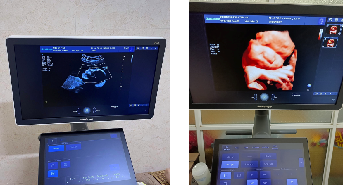 Hình ảnh thực tế trên máy siêu âm SonoScape P20.